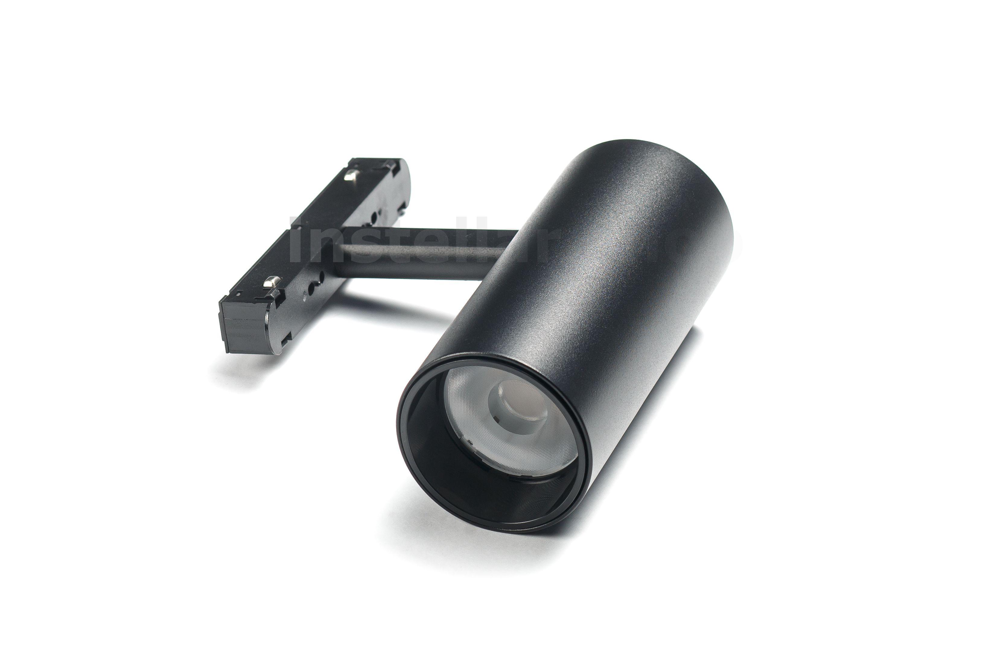 Светильник трековый для встраиваемого магнитного шинопровода, d58*H130, 20W, DC48V, 4000K, instellar Поворотный компактный точечный светильник, который даёт направленный свет. Подходит для акцентного освещения, подсветки картин, мебельных ниш, коридоров и функциональных зон. Напряжение питания - DC48V Мощность - 20Вт Цветовая температура - 4000К Светоотдача - 1700Лм Индекс CRI >80 Материал корпуса - алюминий Цвет корпуса - черный Тип рассеивателя - линза Без сменной лампы