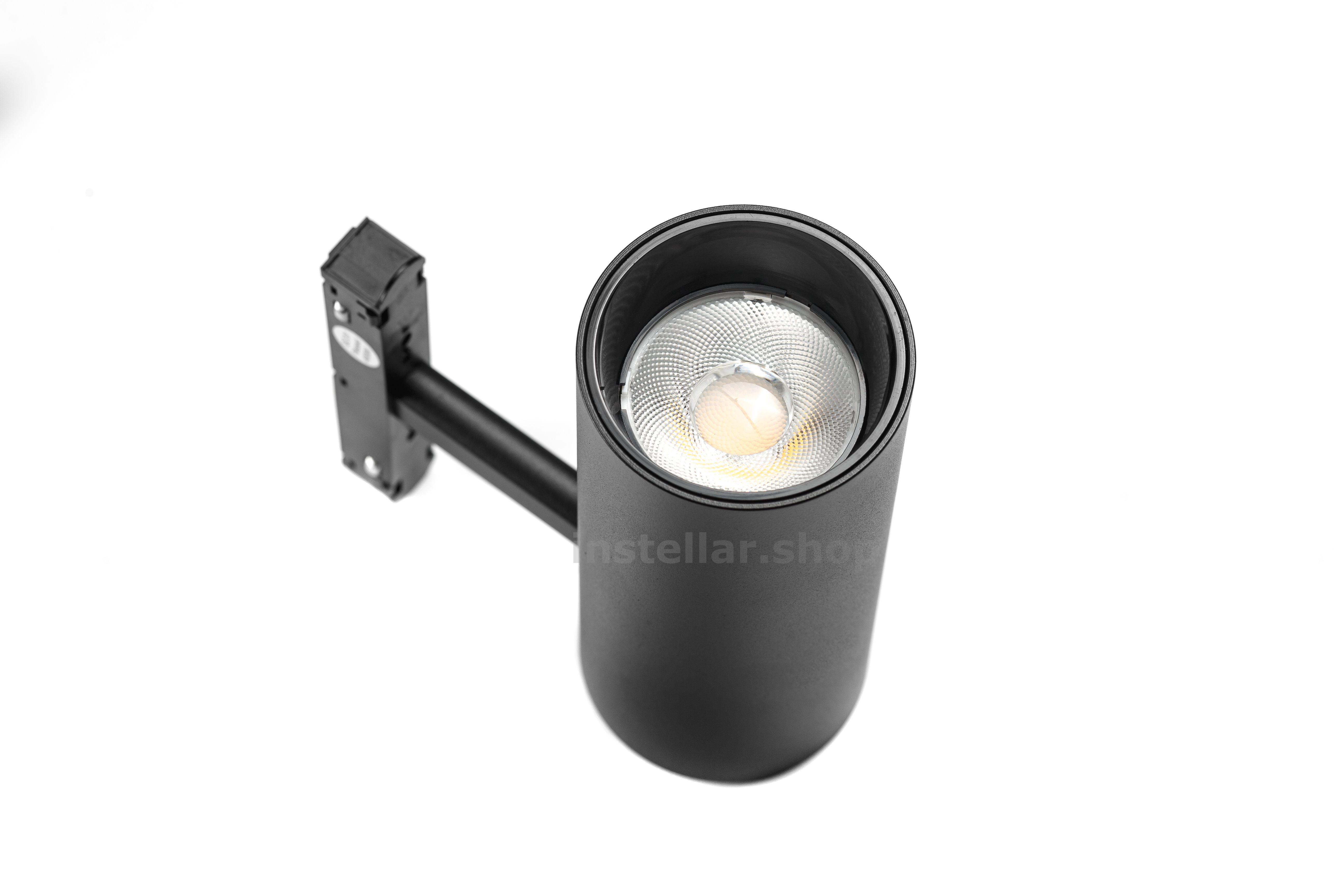 Светильник трековый для встраиваемого магнитного шинопровода, d68*H1155, 30W, DC48V, 4000K, instellar Поворотный компактный точечный светильник, который даёт направленный свет. Подходит для акцентного освещения, подсветки картин, мебельных ниш, коридоров и функциональных зон. Напряжение питания - DC48V Мощность - 30Вт Цветовая температура - 4000К Светоотдача - 2600Лм Индекс CRI >80 Материал корпуса - алюминий Цвет корпуса - черный Тип рассеивателя - линза Без сменной лампы