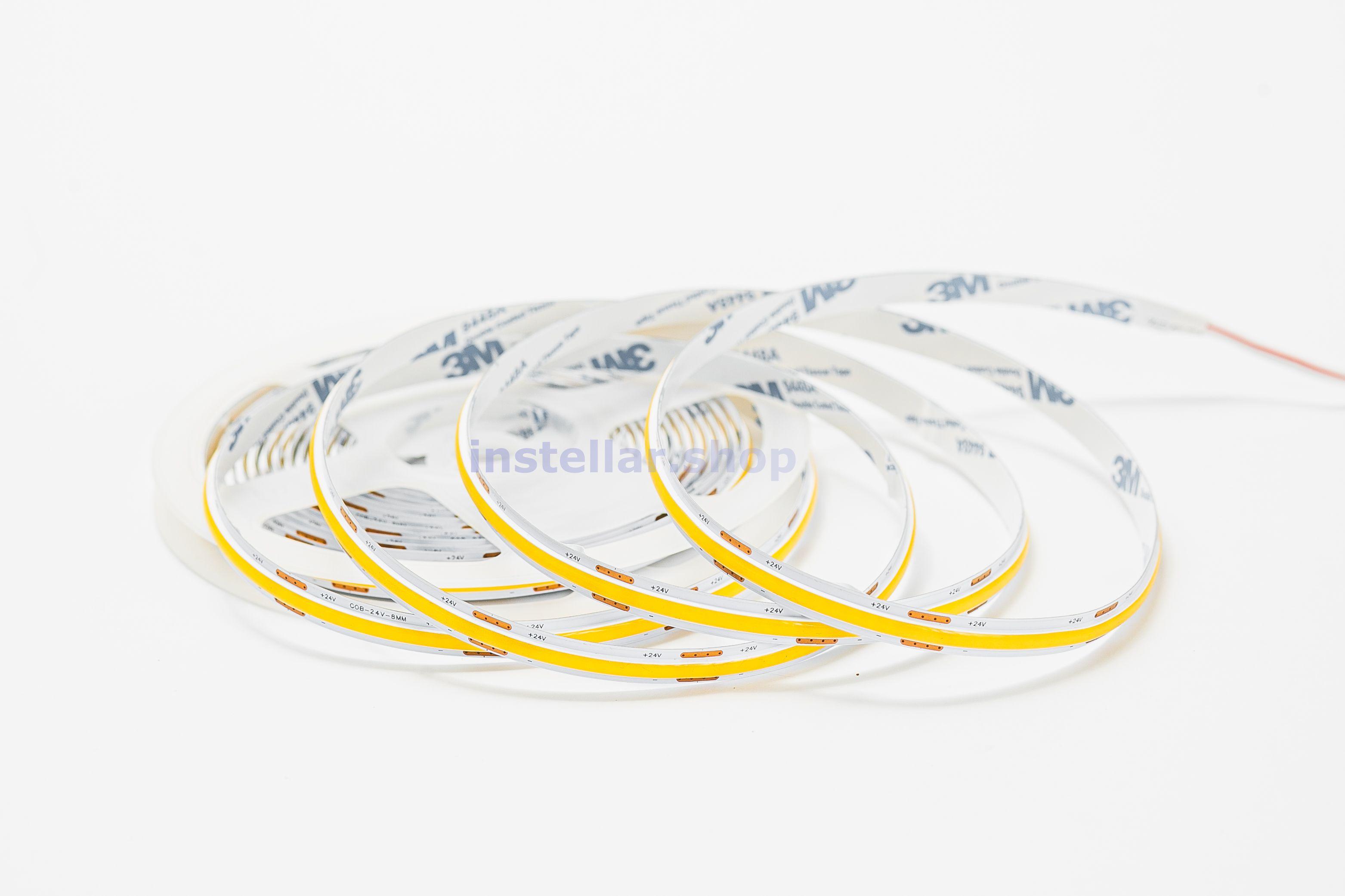 Светодиодная лента на гибкой медной основе с клейким основанием 3М, имеет 1 ряд светодиодов, ширину 8 мм. Тип светодиодов COB (Светодиодная лента COB производится с использованием технологии Chip-on-Board, что переводится как "микросхема на плате". Диоды в такой ленте припаяны не к корпусу, а затем к плате, а напрямую к печатной плате с последующей изоляцией сверху). Напряжение питания постоянное 24 вольта 320 светодиодов на 1 метр Класс защиты IP20 (IP20 — маркировка степени защиты оболочки электрооборудования (Ingress Protection Code). Она обозначает комбинацию двух цифр Первая цифра (2) — защита от проникновения твёрдых предметов размером более 12,5 мм (например, пальцев рук, толстых кабелей). Вторая цифра (0) — отсутствие защиты от влаги (конденсата, брызг, дождя и т.д.) Цветовая температура 3000 Кельвинов (Цветовая температура — это характеристика, которая определяет оттенок света, излучаемого источником освещения. Визуально она определяет, насколько свет кажется "тёплым" или "холодным"). Мощность потребления составляет 10 ватт на 1 метр Индекс цветопрередачи CRI > 80 (Значение индекса цветопередачи (CRI, Color Rendering Index) выше 80 означает, что искусственный источник света точно передаёт цвета объектов по сравнению с естественным освещением). Кратность резки составляет 3,9 см, (это длина шага, позволяющего делить ленту на самостоятельные модули с минимально возможной длиной свечения).