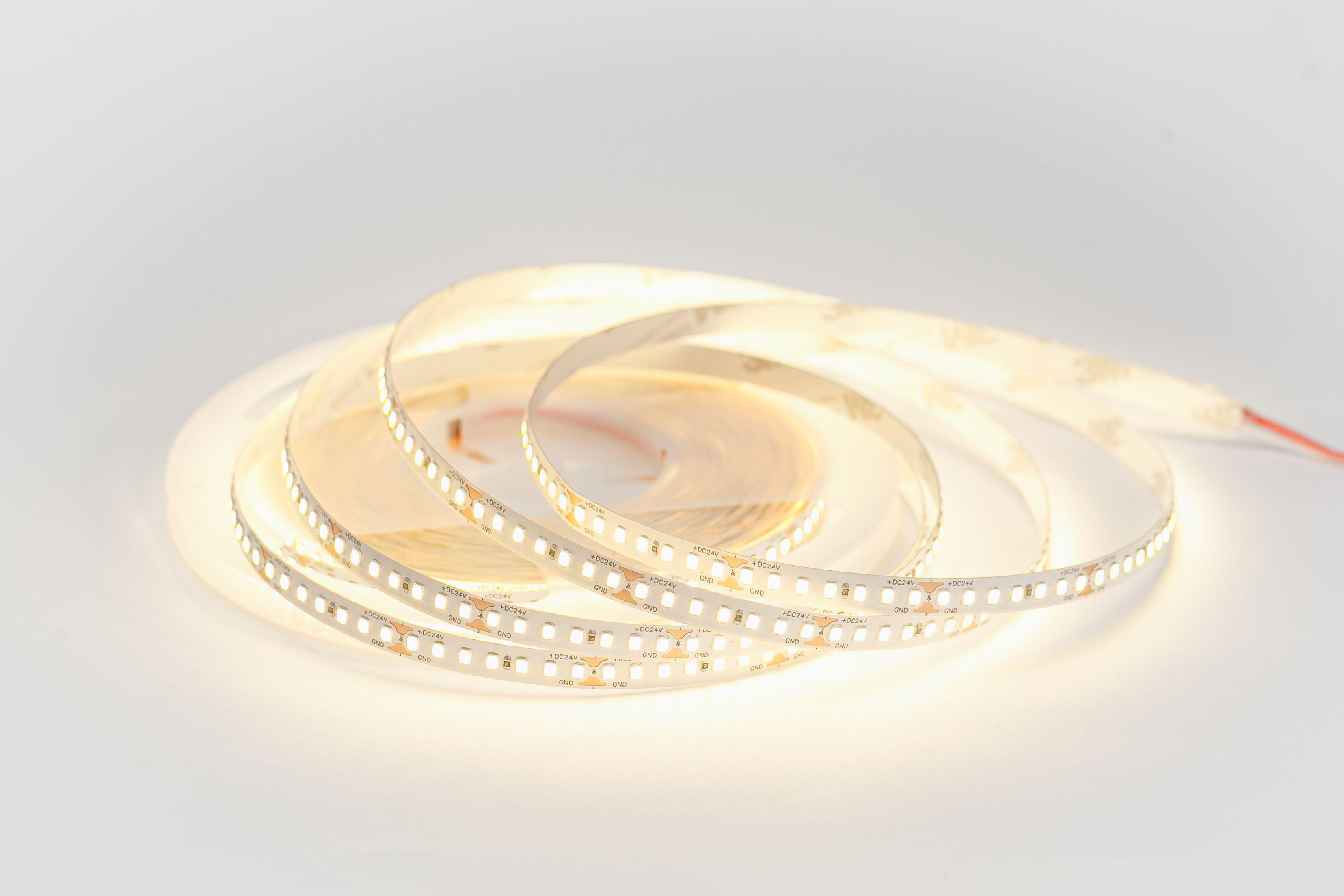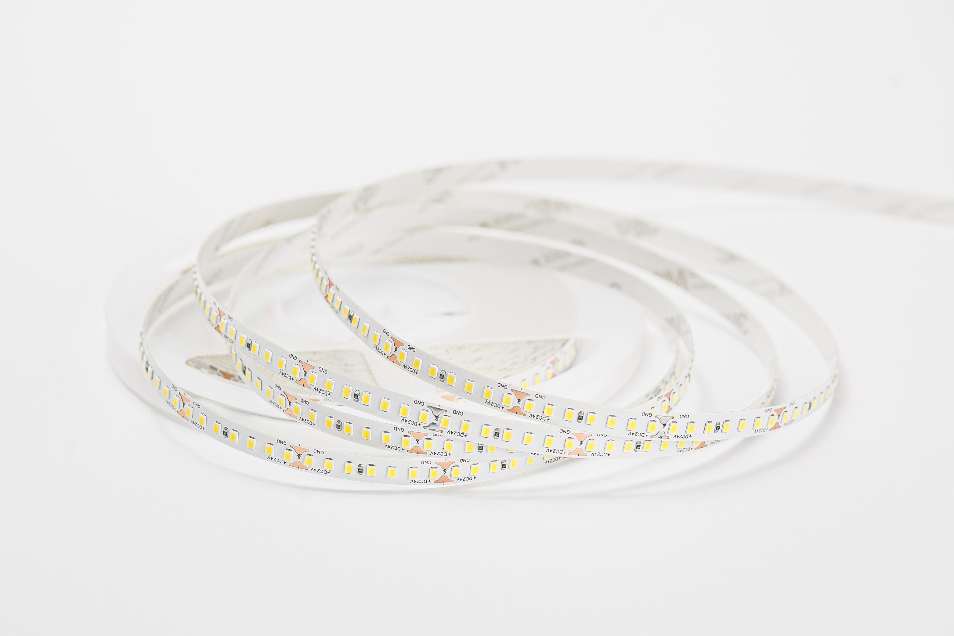 Светодиодная лента на гибкой медной основе с клейким основанием 3М, имеет один ряд светодиодов, ширину 10 мм Тип светодиодов SMD2835 (SMD 2835 — обозначение типоразмера светодиода для поверхностного монтажа (Surface Mounted Device) SMD — аббревиатура, которая означает "устройство, монтируемое на поверхность". 2835 — четырёхзначное число, указывающее на габариты светодиода: ширину — 2,8 мм, длину — 3,5 мм. Напряжение питания постоянное 24 вольта Мощность 14 Ватт на 1 метр 182 светодиода на 1 метр Класс защиты IP20 (IP20 — маркировка степени защиты оболочки электрооборудования (Ingress Protection Code). Она обозначает комбинацию двух цифр Первая цифра (2) — защита от проникновения твёрдых предметов размером более 12,5 мм (например, пальцев рук, толстых кабелей). Вторая цифра (0) — отсутствие защиты от влаги (конденсата, брызг, дождя и т.д.) Цветовая температура 3000 Кельвинов (Цветовая температура — это характеристика, которая определяет оттенок света, излучаемого источником освещения. Визуально она определяет, насколько свет кажется "тёплым" или "холодным"). Мощность потребления составляет 10 ватт на 1 метр Индекс цветопрередачи CRI > 80 (Значение индекса цветопередачи (CRI, Color Rendering Index) выше 80 означает, что искусственный источник света точно передаёт цвета объектов по сравнению с естественным освещением). Кратность резки составляет 4 см, (это длина шага, позволяющего делить ленту на самостоятельные модули с минимально возможной длиной свечения).