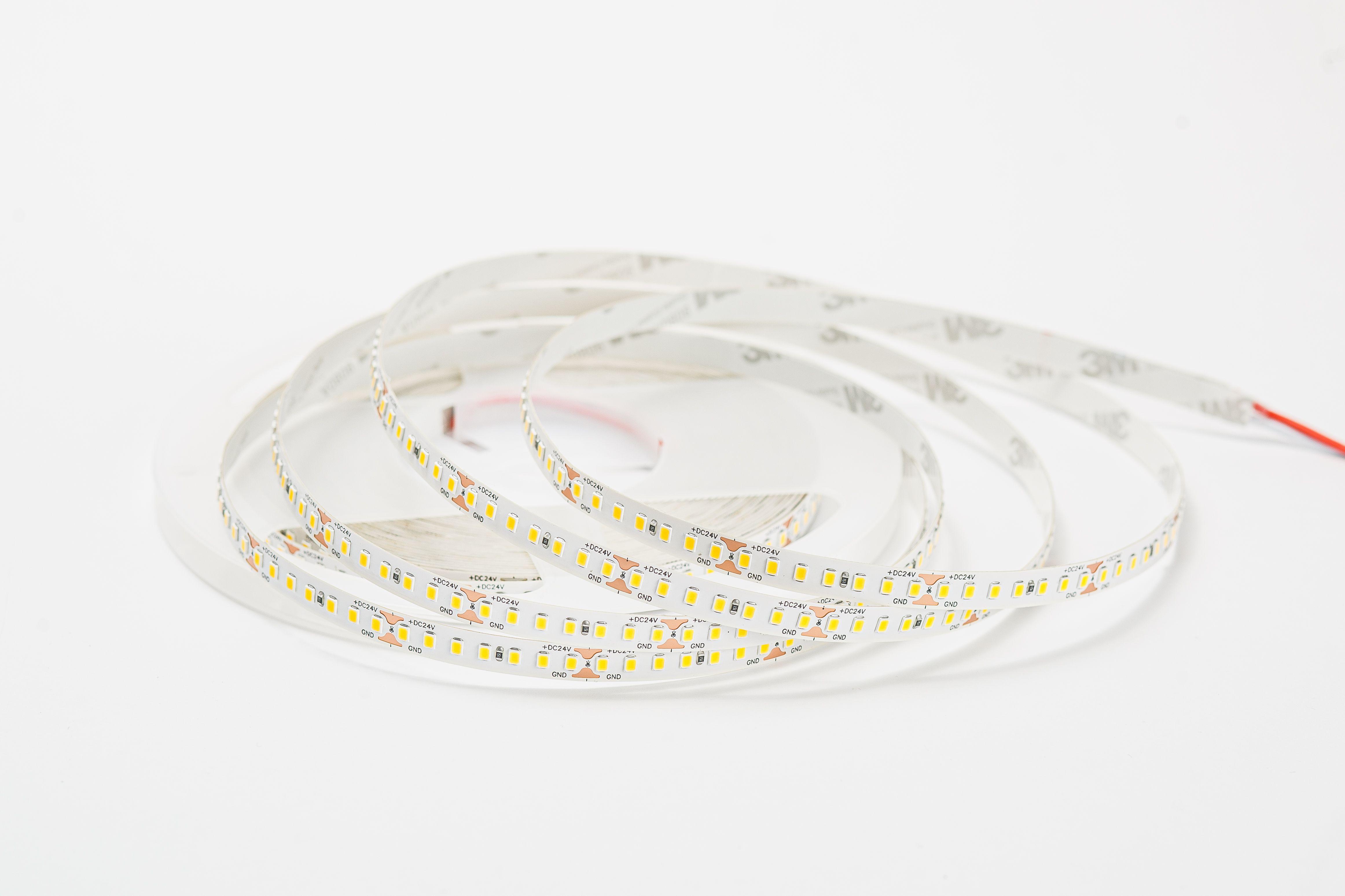 Светодиодная лента на гибкой медной основе с клейким основанием 3М, имеет один ряд светодиодов, ширину 10 мм Тип светодиодов SMD2835 (SMD 2835 — обозначение типоразмера светодиода для поверхностного монтажа (Surface Mounted Device) SMD — аббревиатура, которая означает "устройство, монтируемое на поверхность". 2835 — четырёхзначное число, указывающее на габариты светодиода: ширину — 2,8 мм, длину — 3,5 мм. Напряжение питания постоянное 24 вольта Мощность 14 Ватт на 1 метр 182 светодиода на 1 метр Класс защиты IP20 (IP20 — маркировка степени защиты оболочки электрооборудования (Ingress Protection Code). Она обозначает комбинацию двух цифр Первая цифра (2) — защита от проникновения твёрдых предметов размером более 12,5 мм (например, пальцев рук, толстых кабелей). Вторая цифра (0) — отсутствие защиты от влаги (конденсата, брызг, дождя и т.д.) Цветовая температура 4000 Кельвинов (Цветовая температура — это характеристика, которая определяет оттенок света, излучаемого источником освещения. Визуально она определяет, насколько свет кажется "тёплым" или "холодным"). Мощность потребления составляет 10 ватт на 1 метр Индекс цветопрередачи CRI > 80 (Значение индекса цветопередачи (CRI, Color Rendering Index) выше 80 означает, что искусственный источник света точно передаёт цвета объектов по сравнению с естественным освещением). Кратность резки составляет 4 см, (это длина шага, позволяющего делить ленту на самостоятельные модули с минимально возможной длиной свечения).