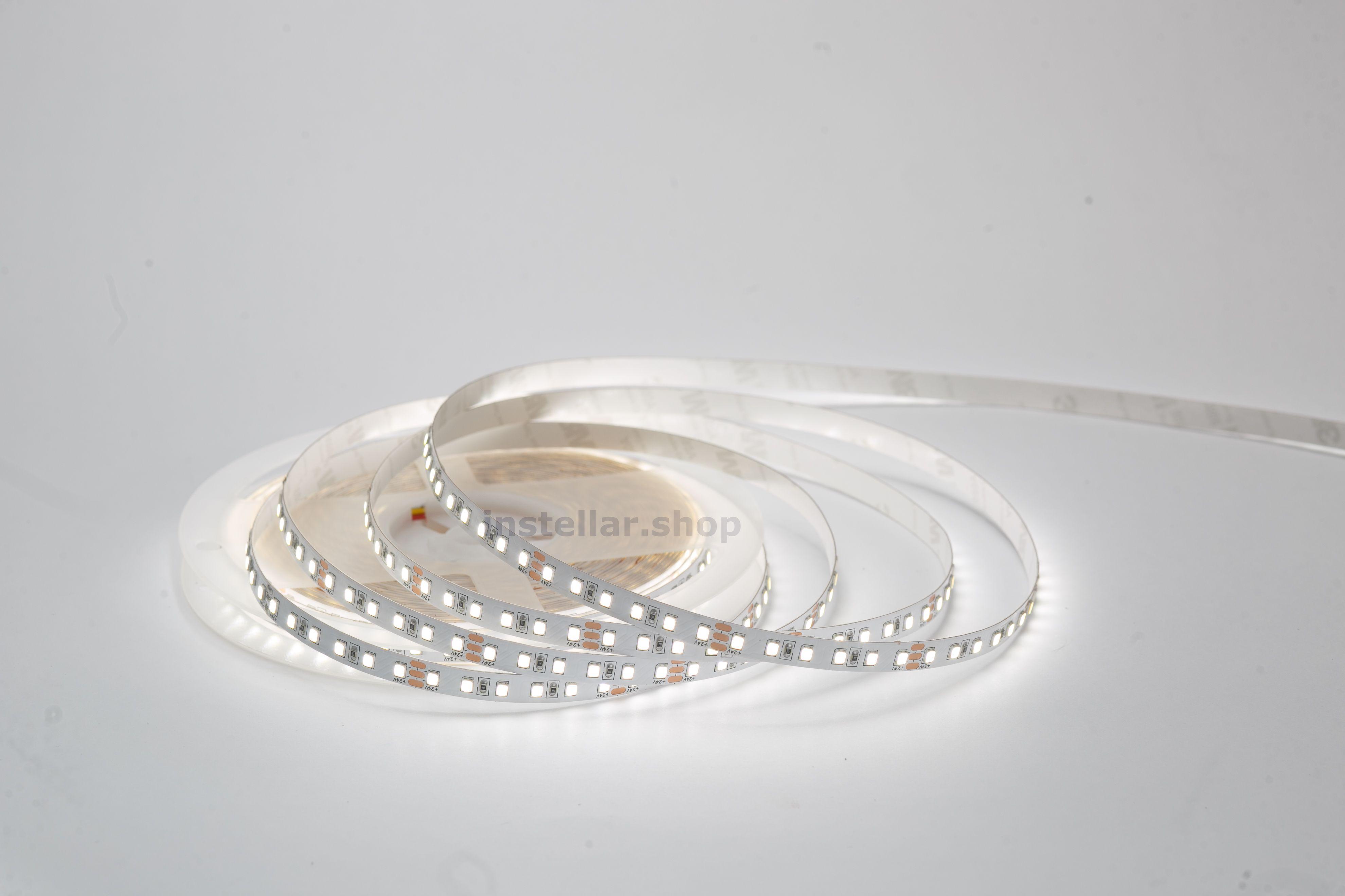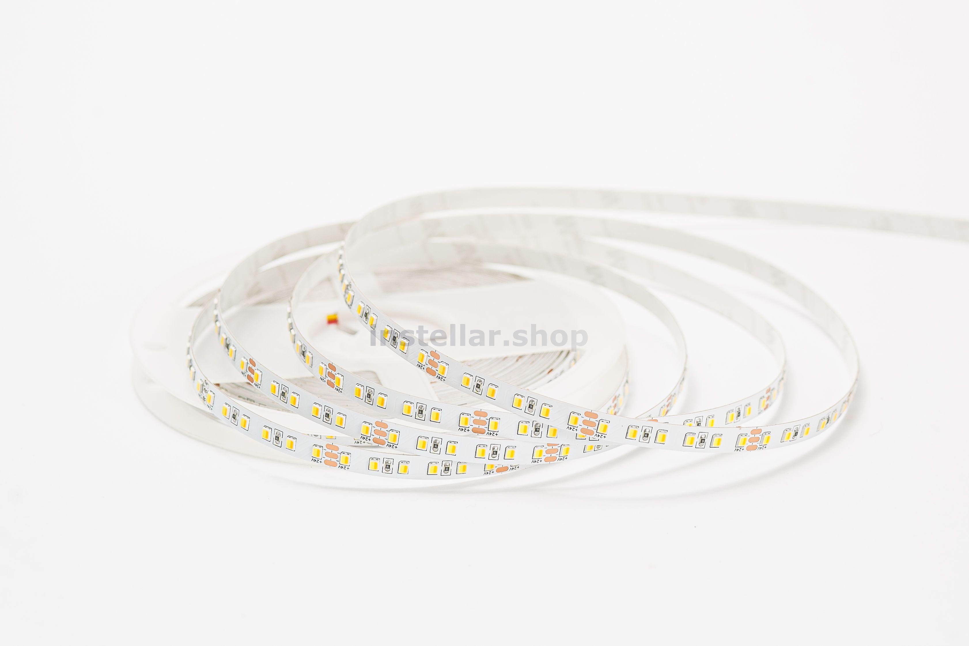 Светодиодная лента на гибкой медной основе с клейким основанием 3М, имеет один ряд светодиодов с разной цветовой температурой совмещенной в одном светодиоде, ширину 8 мм Тип светодиодов SMD2835 (SMD 2835 — обозначение типоразмера светодиода для поверхностного монтажа (Surface Mounted Device) SMD — аббревиатура, которая означает "устройство, монтируемое на поверхность". 2835 — четырёхзначное число, указывающее на габариты светодиода: ширину — 2,8 мм, длину — 3,5 мм. Напряжение питания постоянное 24 вольта Мощность 16 Ватт на 1 метр 120 светодиодв на 1 метр Класс защиты IP20 (IP20 — маркировка степени защиты оболочки электрооборудования (Ingress Protection Code). Она обозначает комбинацию двух цифр Первая цифра (2) — защита от проникновения твёрдых предметов размером более 12,5 мм (например, пальцев рук, толстых кабелей). Вторая цифра (0) — отсутствие защиты от влаги (конденсата, брызг, дождя и т.д.) Цветовая температура 3000+6000 Кельвинов (Цветовая температура — это характеристика, которая определяет оттенок света, излучаемого источником освещения. Визуально она определяет, насколько свет кажется "тёплым" или "холодным"). Мощность потребления составляет 16 ватт на 1 метр Индекс цветопрередачи CRI > 80 (Значение индекса цветопередачи (CRI, Color Rendering Index) выше 80 означает, что искусственный источник света точно передаёт цвета объектов по сравнению с естественным освещением). Кратность резки составляет 5 см, (это длина шага, позволяющего делить ленту на самостоятельные модули с минимально возможной длиной свечения).
