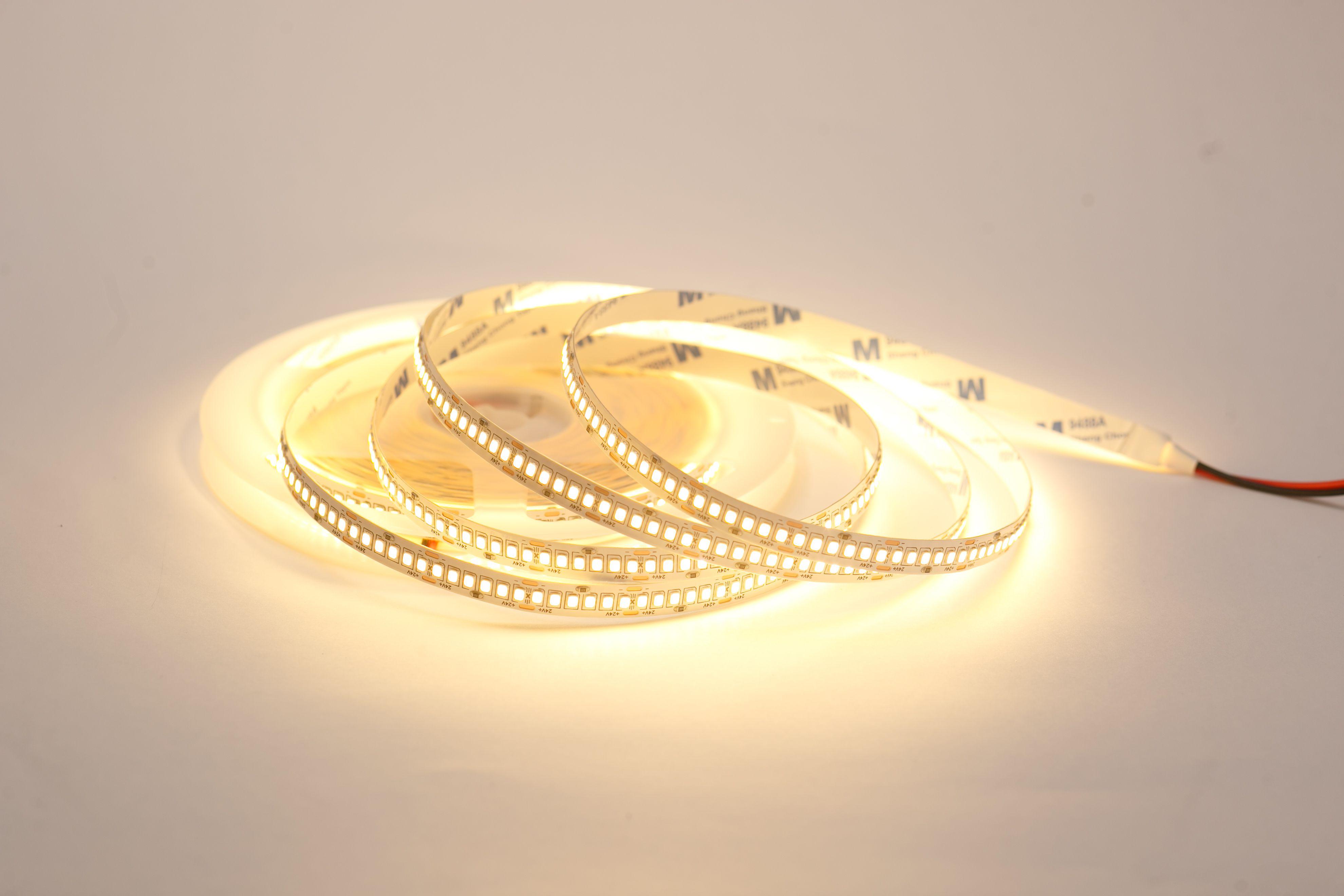 Светодиодная лента на гибкой медной основе с клейким основанием 3М, имеет один ряд светодиодов, ширину 10 мм Тип светодиодов SMD2835 (SMD 2835 — обозначение типоразмера светодиода для поверхностного монтажа (Surface Mounted Device) SMD — аббревиатура, которая означает "устройство, монтируемое на поверхность". 2835 — четырёхзначное число, указывающее на габариты светодиода: ширину — 2,8 мм, длину — 3,5 мм. Напряжение питания постоянное 24 вольта Мощность 18 Ватт на 1 метр 240 светодиодов на 1 метр Класс защиты IP20 (IP20 — маркировка степени защиты оболочки электрооборудования (Ingress Protection Code). Она обозначает комбинацию двух цифр Первая цифра (2) — защита от проникновения твёрдых предметов размером более 12,5 мм (например, пальцев рук, толстых кабелей). Вторая цифра (0) — отсутствие защиты от влаги (конденсата, брызг, дождя и т.д.) Цветовая температура 3000 Кельвинов (Цветовая температура — это характеристика, которая определяет оттенок света, излучаемого источником освещения. Визуально она определяет, насколько свет кажется "тёплым" или "холодным"). Мощность потребления составляет 10 ватт на 1 метр Индекс цветопрередачи CRI > 80 (Значение индекса цветопередачи (CRI, Color Rendering Index) выше 80 означает, что искусственный источник света точно передаёт цвета объектов по сравнению с естественным освещением). Кратность резки составляет 2,5 см, (это длина шага, позволяющего делить ленту на самостоятельные модули с минимально возможной длиной свечения).